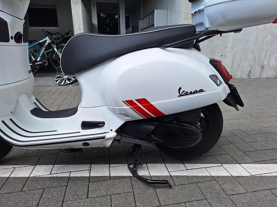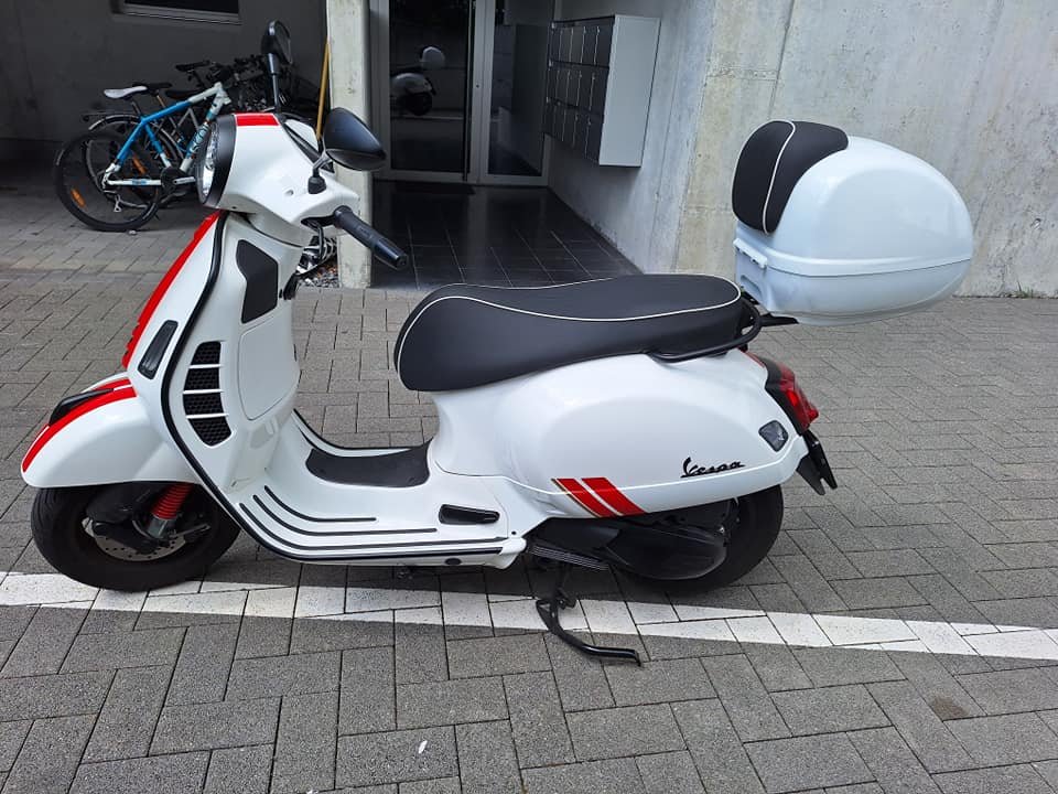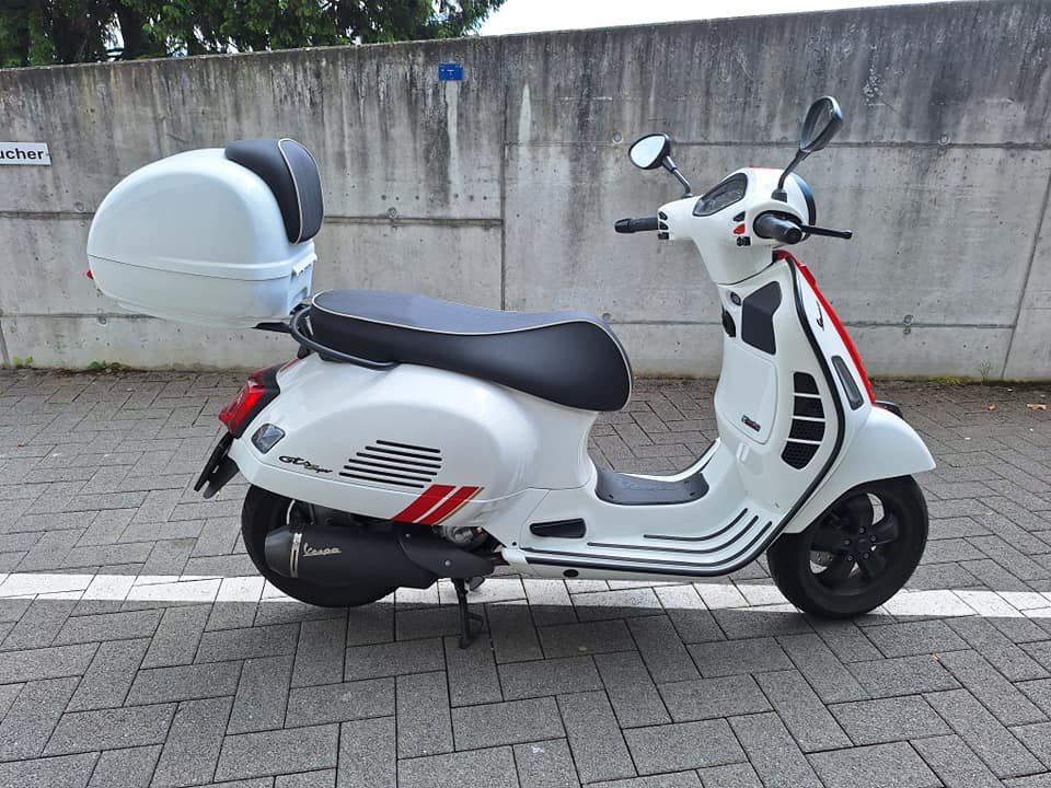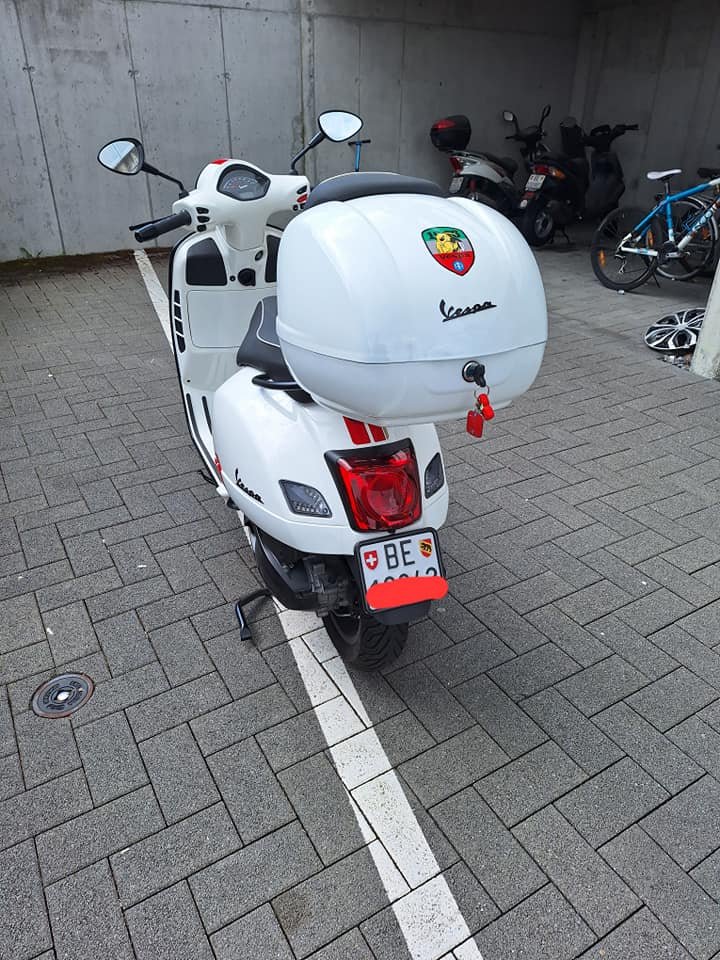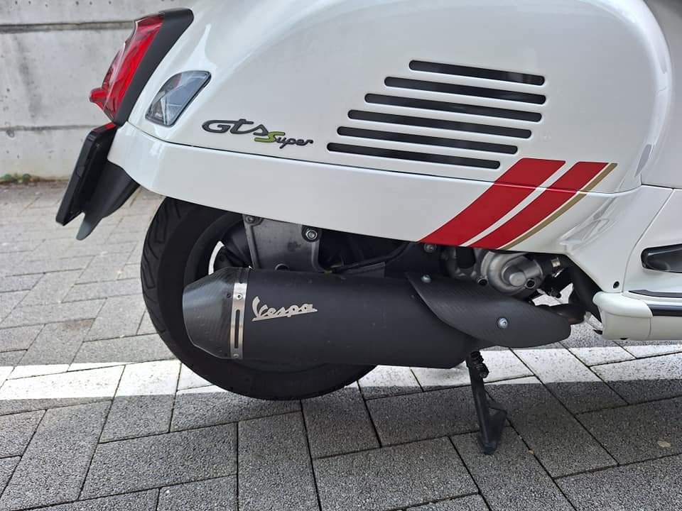 A vendre Vespa GTS 300, Première immatriculation 4-2022, toujours sous garantie Piaggio jusqu'en avril 2026. km 2800 évolutifs. Échappement Vespa (Arrow) avec certificat d'homologation. Clignotants plus foncés (Moto Nostra) Top-case 36 LT. Et même d'autres petits changements voir les photos. Pièces d'origine disponibles