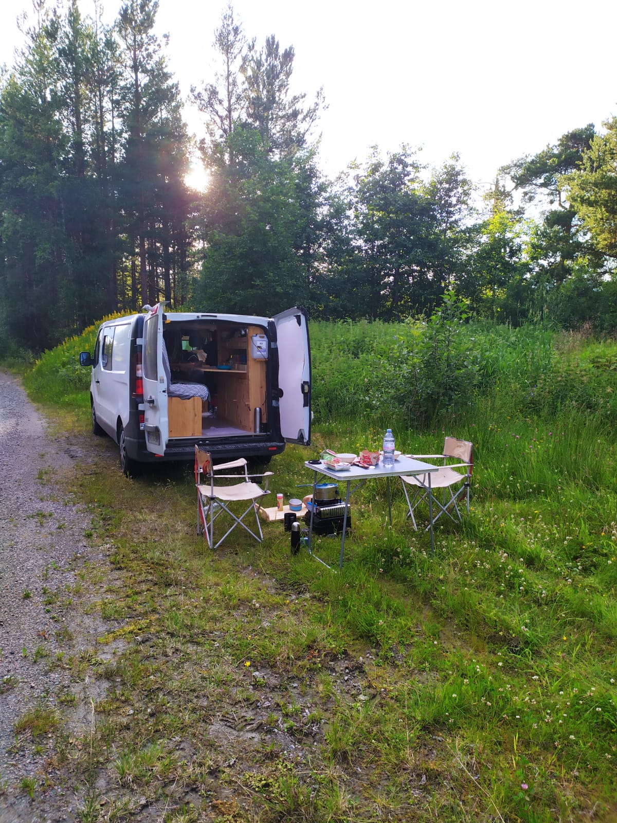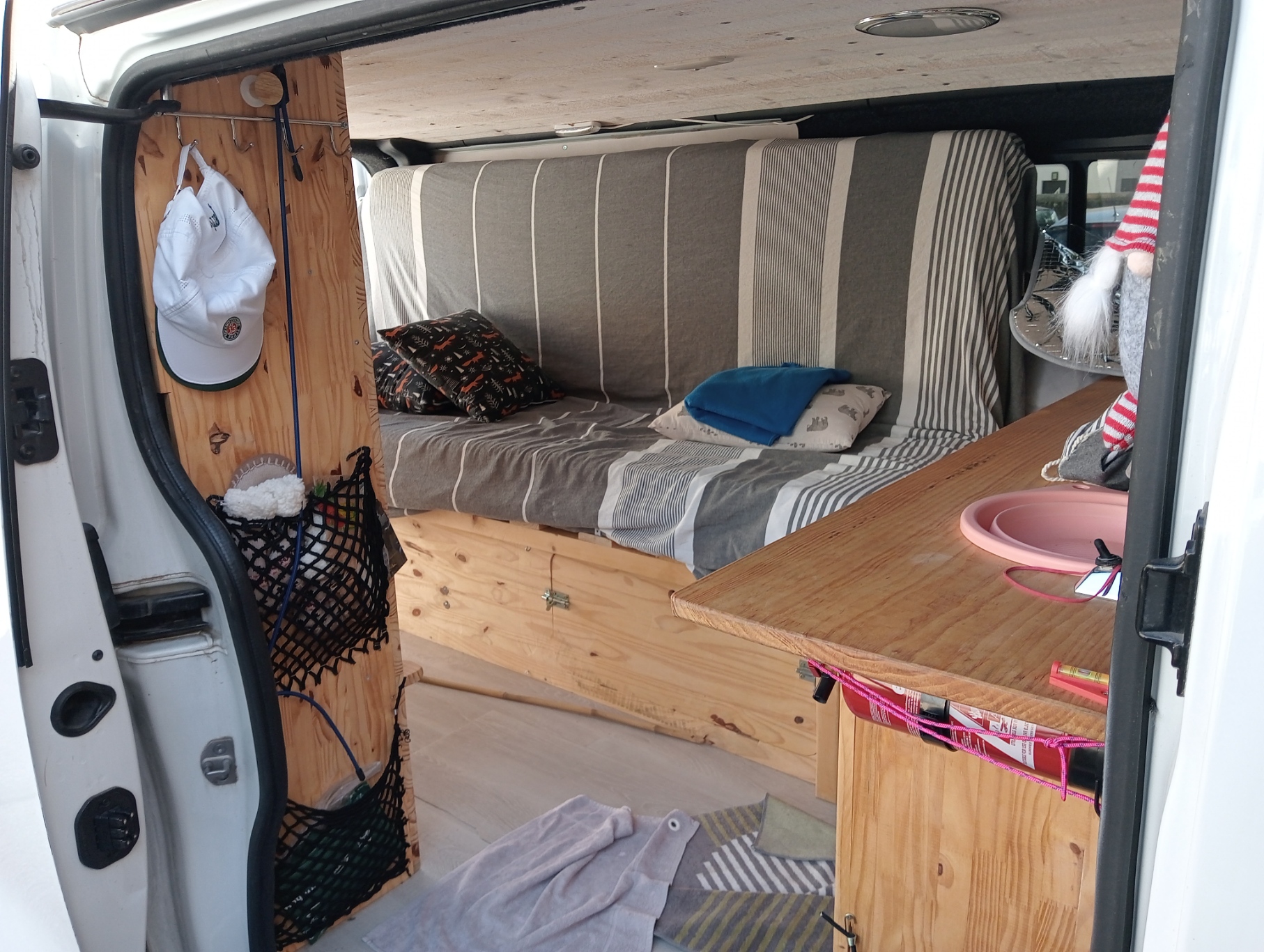 1 table d'appoint + 2 sièges pour extérieur intégré en rangement fixe dans van-